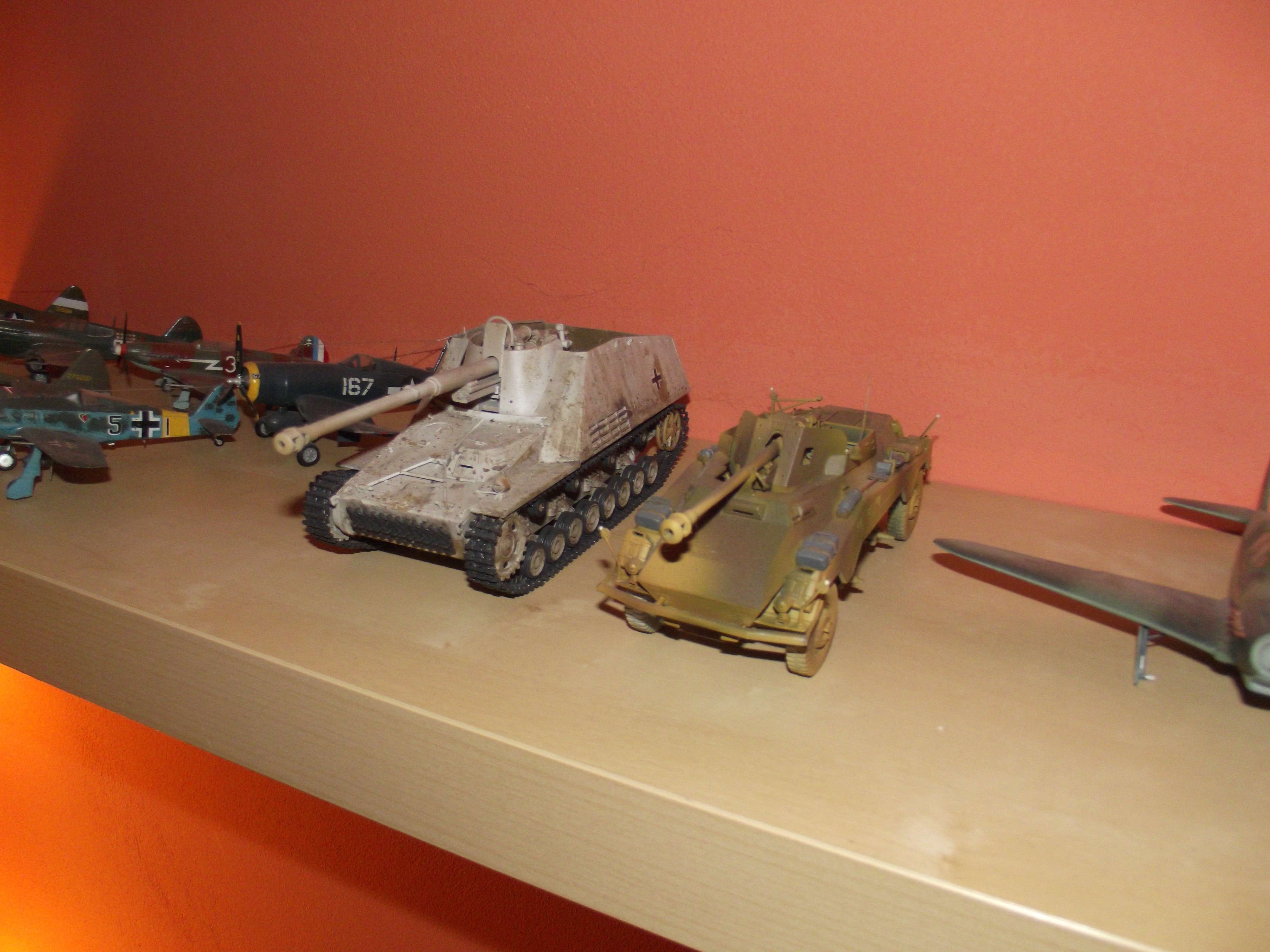 Dále mám rozestavěné dvě Lavočky ( Academy), těsně před dokončením je Jak7B (ICM), dvě stavebnice techniky v měřítku 1:35( stará Italerka a Dragon) a jednu 1 :72 (Revell) a perlu Spitfira od Eduardu.
