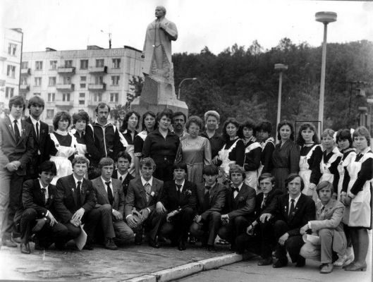 Přidám foto z dob, kdy stávala socha před kulturním domem. Úplně jiné místo, i se záhony.
