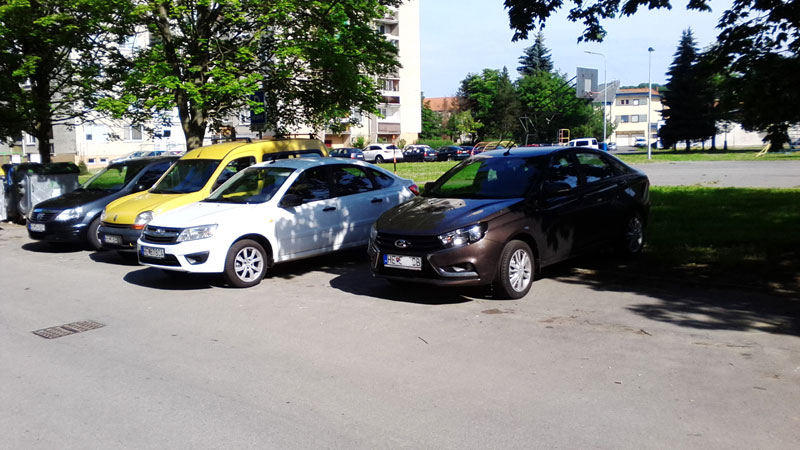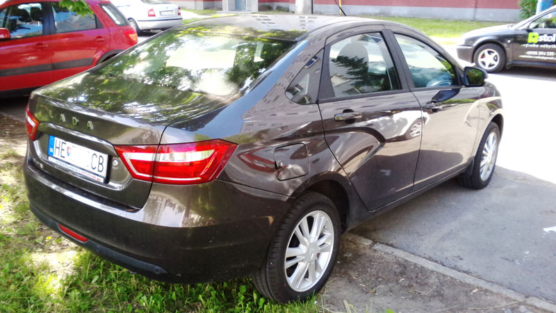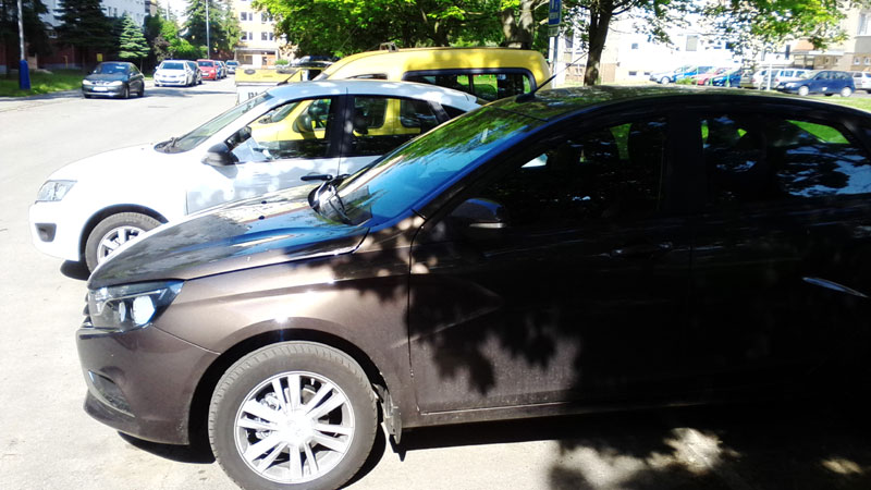 Dnes videná Lada Vesta v tejto farbe okolo štvrtej poobede pri nákupnom centre a naokolo môjho bydliska som objavil aj Kalinu I. vo vínovej metalíze, pri predchádzajúcej Veste v čokoládovej metalíze.