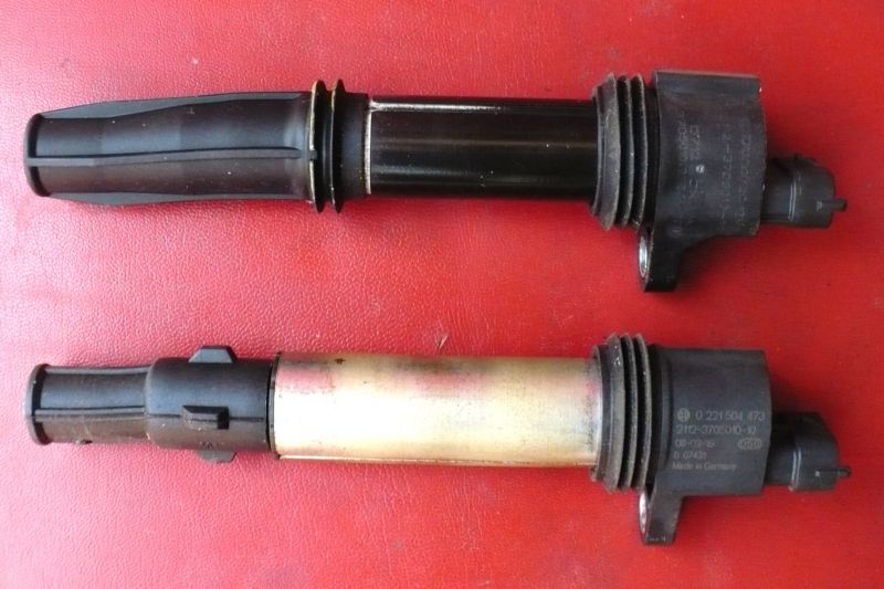 Překvapilo mne, že tři cívky byly Dynastic a jedna Made in Germany bez bližšího udání výrobce. Je to tam z výroby. Také jsem nahlédnul na vršek pístů