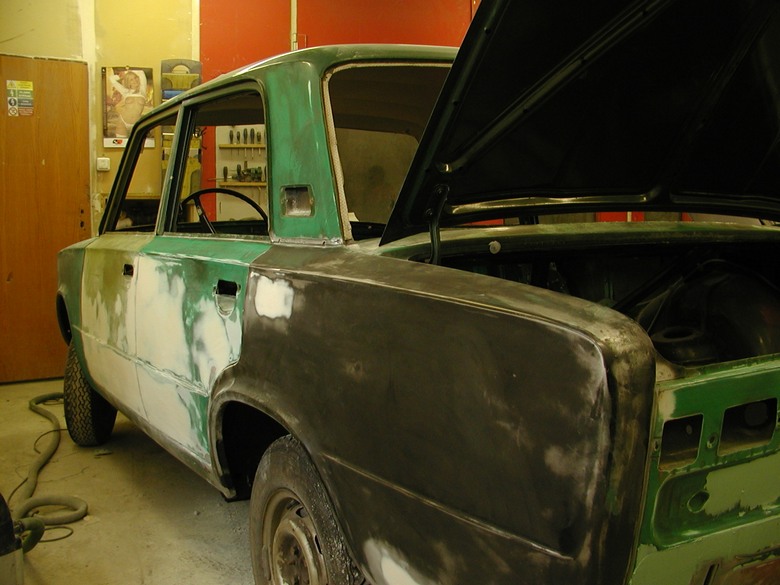 . Plechovka ještě barvu nemá a hned tak mít nebude. Lakýrník má jako vždy zpoždění, nicméně první týden v dubnu se bude lakovat. Momentálně se maká naplno a začátkem týdne půjde žigulíček do plniče, který však musí nějakou tu dobu zrát ... proto lak až v prvním dubnovém týdnu.