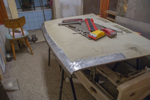 Já na přední hraně kapoty strávil den, jenom rovnáním jednoho dlouhého sváru.