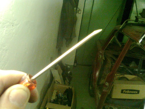 Potom to slo ako po masle, vcielka sa da vypacit, pricom sa zabruseny srubovak opiera o zarez svorky a nie o tapec, takze sa mi podarilo neprerazit ho o hranu karoserie.