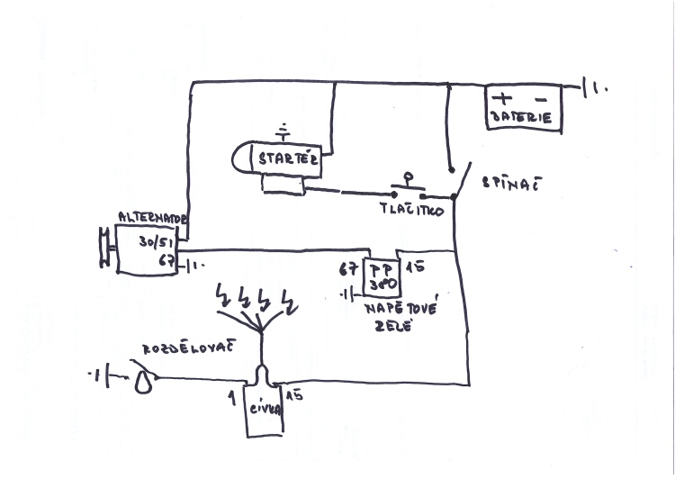 to uz by bylo hodne komplikovane né? jak to tedy vse zapojit jak startovani tak dobijení ..mužete mi to prosím nakreslit do jednoho schématu? + nejake popisky.. predem díky