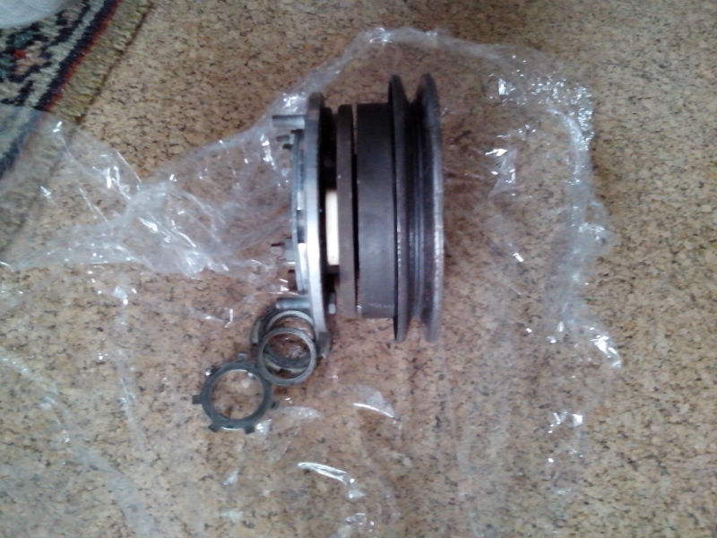 Tak dorazila elektromagnetická spojka z F 125p i s čerpadlem... Spojka je již stažena, teď koupit novou vodní pumpu a ventilátor a spasovat to... Bude se muset vytvořit držák na uhlík na napájení cívky spojka... No bude to zajímavé... Jistě stojí za úvahu životnost ložisek čerpadla při zatížení tímto prvkem a zároveň ráz při zapnutí této spojky... Například v některých typech lokomotiv dochází k prokluzům a praskání řemenů, tak jsem na to zvědav...