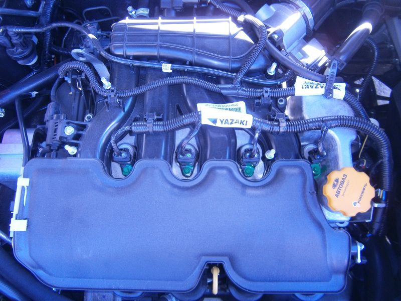 Trochu som sa Veste pozrel pod kožu. Som prekvapený kolko miesta je všade okolo! Voľný prístup k predným žiarovkám, trubky od klímy krásne kopírujú steny motorového priestoru, medzi motorom a motorovou priečkou je miesta, že by sa tam dal zmestiť motor z Oky (nadnesene), po zhodení spodného krytu sa medzi chladič a blok s prehľadom zmestí mechanikova hlava. Dokonca taka blbost, ale všimol som si, že v prednom čele je popred motor spravený pozdlzny otvor a po zhodení masky by sa cez ten otvor dali prekrásne odsrobovat matice sania, co bol v Priore s klimou velky problem. Moje srdce zaplesalo, ked som uvidel ako je riešené odvetrávanie, resp. dolievanie oleja do prevodovky - hadicka so spätným ventilom vyvedená az hore k hlave :D Asi kvoli brodeniu, pretože aj sanie je v urovni resne pod kapotou.
