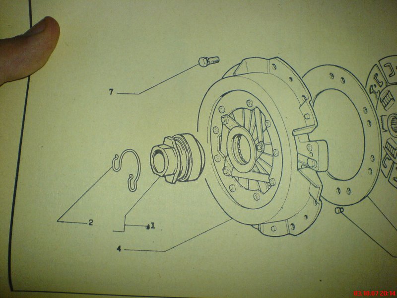 Ok, asi máš pravdu, toto by mohla být skutečně ta závada, popis tomu odpovídá. Tou zajišťovací pružinou spojkového ložiska myslíš pružinu 2? (viz obrázek).