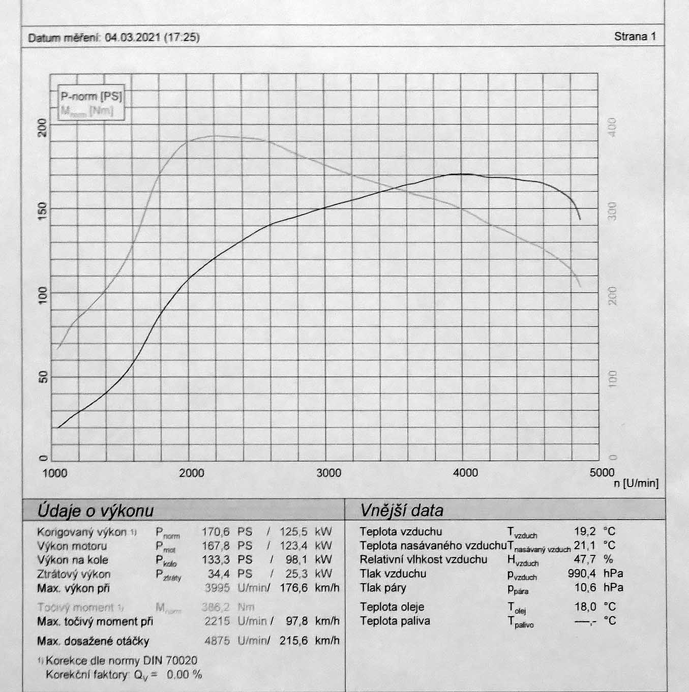 Tak jsem ho vyhrabal. Kecal jsem s těmi 127kW. Je to 125kW a to ne na kolech, ale na motoru (jak to změří, když motor nebyl venku? Přepočtem?)