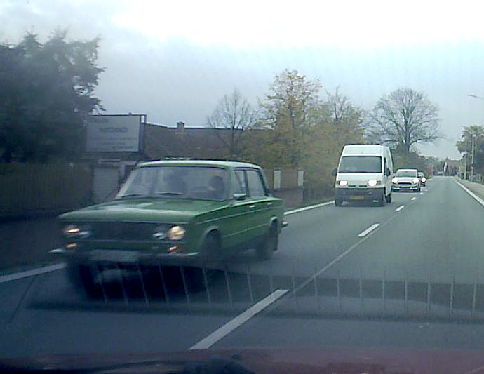 Hezká zelená 2103 nebo 2106 (v rychlosti jsem nerozeznal a záznam kamery je při potkávací rychlosti 50+50 km/h dost mizerný) odchycena 19.10. v běžném provozu v Blešně. Větrací okénko bylo nonšalantně otevřeno