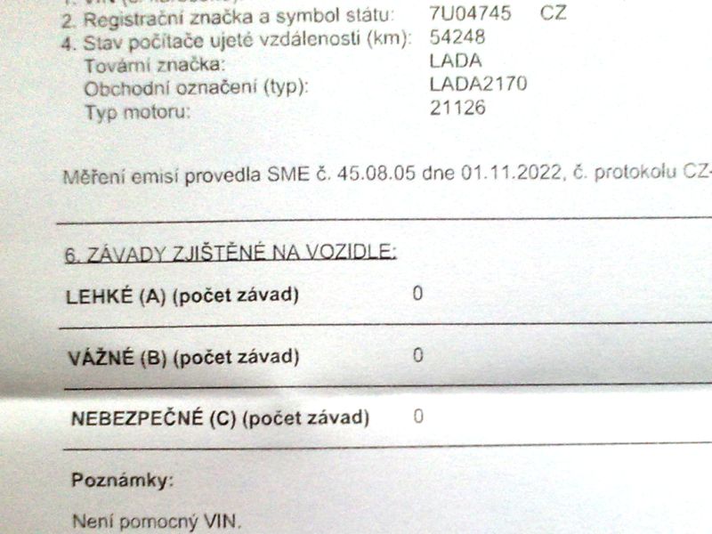 Dnes Priora absolvovala další EM+TK. Emise tradičně lepší jak některá nová auta, na technické vše OK bez závad, jen vytknuta asi ovalita bubnů, ale účinnost dobrá :D
