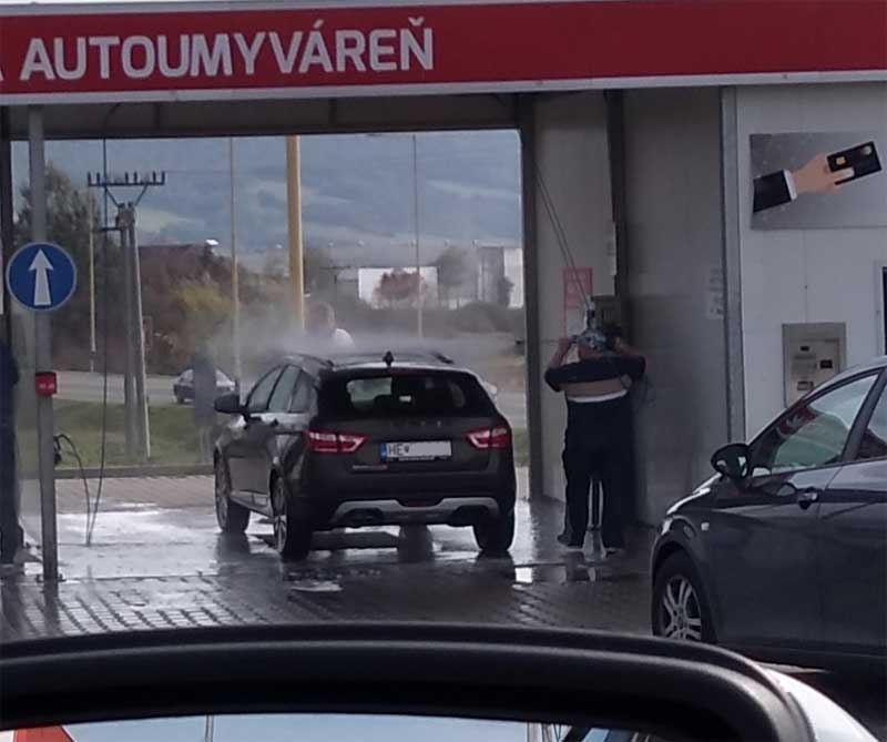 biela drží po dvoch týždňoch sivý povlak čo asi iným vozom farba neukáže tak silno, takže za 0,50 eurocentov napením - to tak keď mám bystré nožky obehnem vozidlo 2x! Dám si minútku aj tri predýchanie nech aktívna pena spraví svoju práci a povolí špinu, potom za 2 eur umývam s práškom alebo bez a ešte ostane čas cca 1 min na oplach demineralizovanou vodou akože ale najsamlepšie to umyjem na chalupe, jo a zelená alebo modrá handra z mikrovlákna tiež spraví svoju prácu, neznášam kvapky uschnuté na skle