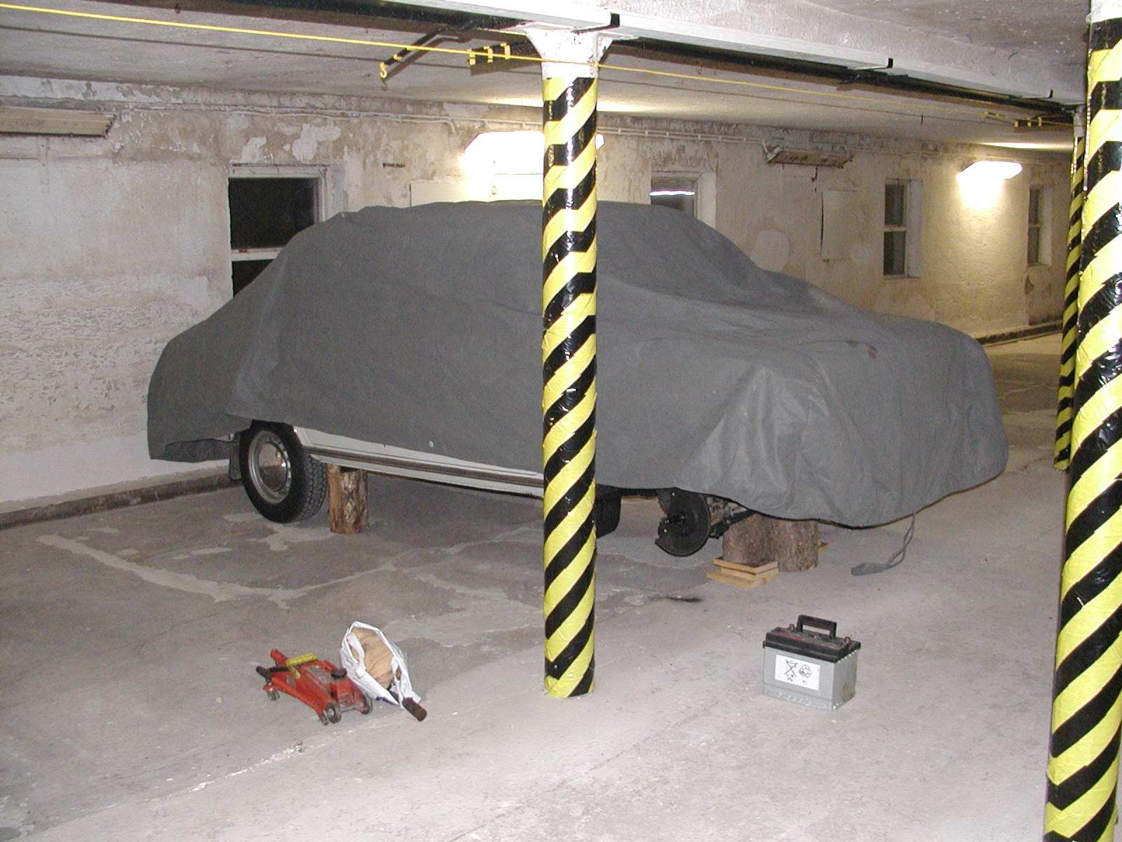 Pepík tedy již týden stojí na špalkách, s vymontovanou autobaterkou, zaplachtovaný ... uložený k zimnímu spánku :)