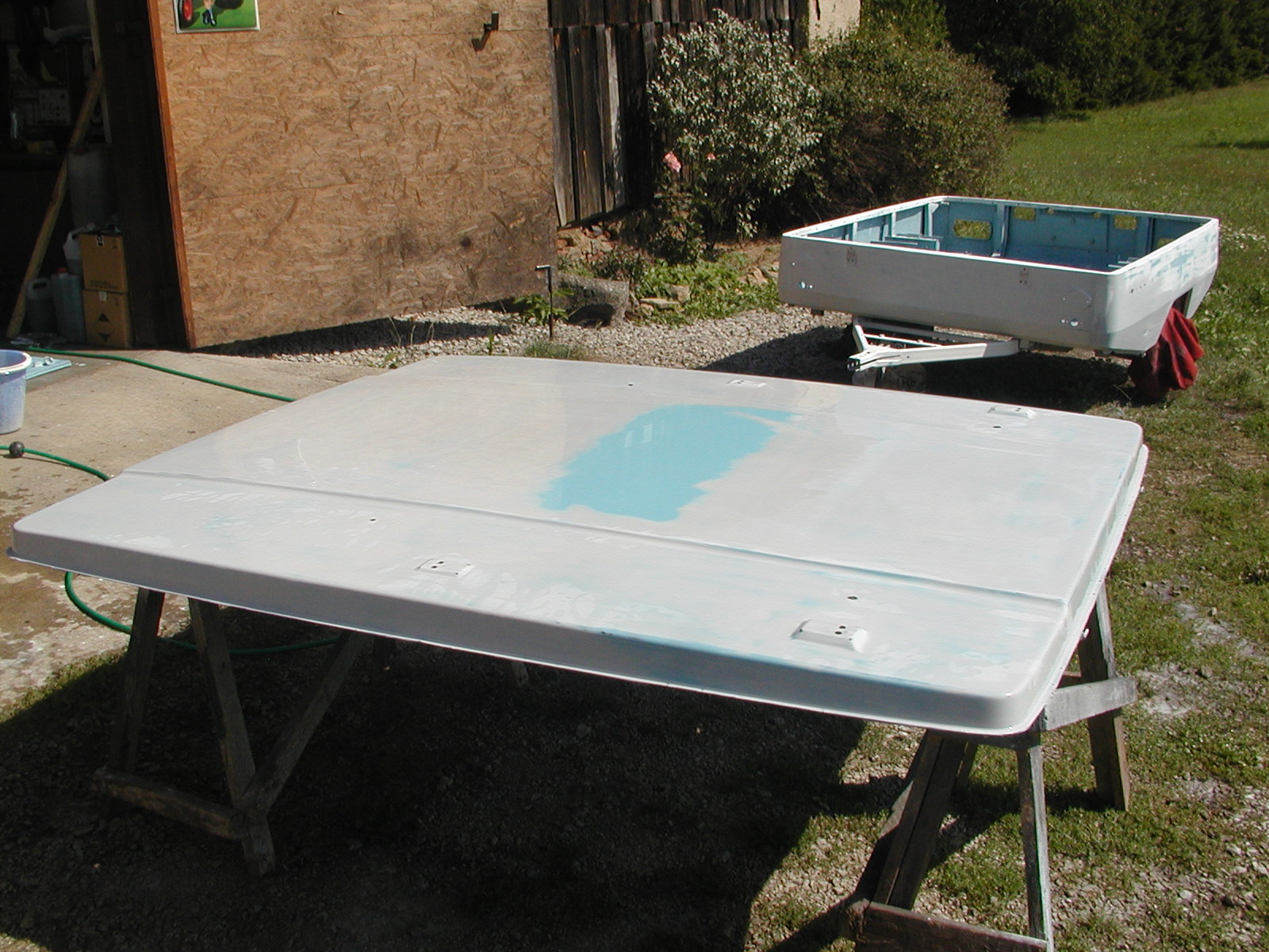 Luďo, jsem rád, že je skif hotový. Až po mě někdo příště bude chtít nějaký lakování, bude mít smůlu. Nejsem lakýrník a fakt mě to nebaví, bo vím, že výsledek prostě nebude profesionální. Nicméně na to, že se to ještě neleštilo, to vypadá řekl bych docela slušně. Jsem zvědavý jak to vypadá složené a za Grantou :).