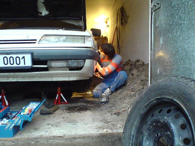 Co tomu autu děláte? :shock: Chcete to hned rozbít? :lol: Jen malý postřeh, nešlo by tu garáž nebo co to je před akcí trochu poklidit? Čistota pracoviště je základ.