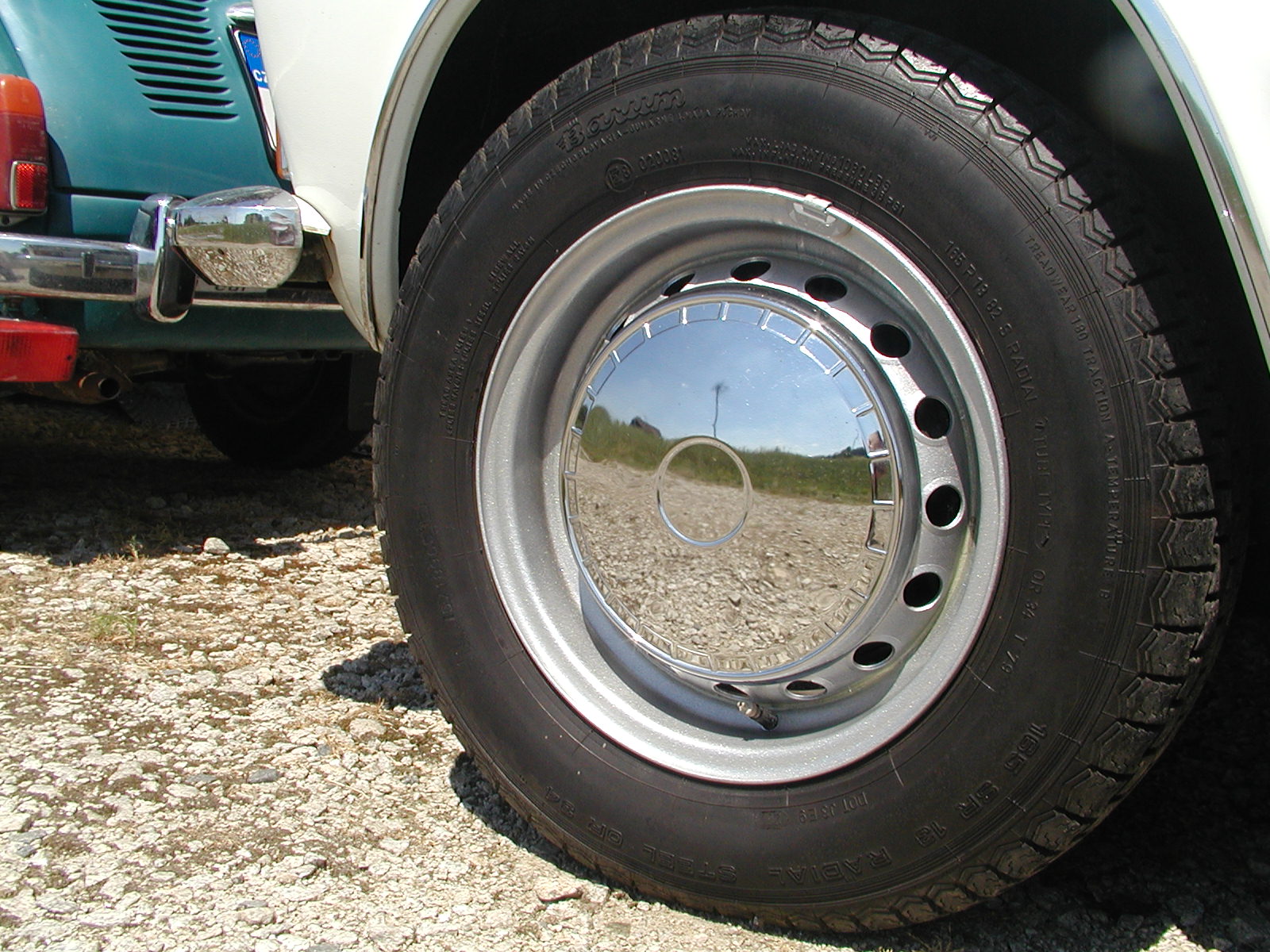 Disky jsou nastříkané zinkovou barvou, spára mezi límcem a středem je vytmelena, načež jsou následně nalakované komaxitem.