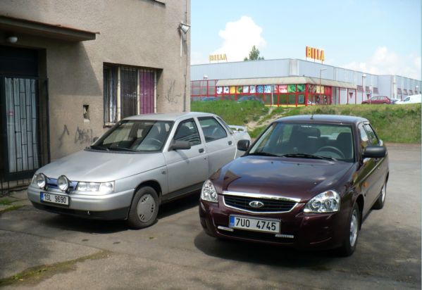 Dnes jsem si udělal s Priorou výlet k Jelenovi, na počátku průměrná spotřeba 6:0 litru, po dojezdu 5:4 l :) To je nejmíň, co jsem měl a přitom jsem cestovní průměr z nějakých 40 zvednul na 57 km/h :) - tak ať mi nikdo neříká, že Ruská auta "žerou" :D A to mi něco pokazilo courání po Kladně, kde mne navigace sice správně vedla k nádražíčku, ale nepočítala s hromadou hlíny a zátarasy :rolleyes: Tedy jak po staru - následovaly dotazy u kolemjdoucích, a až po x tém pokusu a info, že mne nezajímá zákaz vjezdu jsem úspěšně zaparkoval vedle starší sestry :D