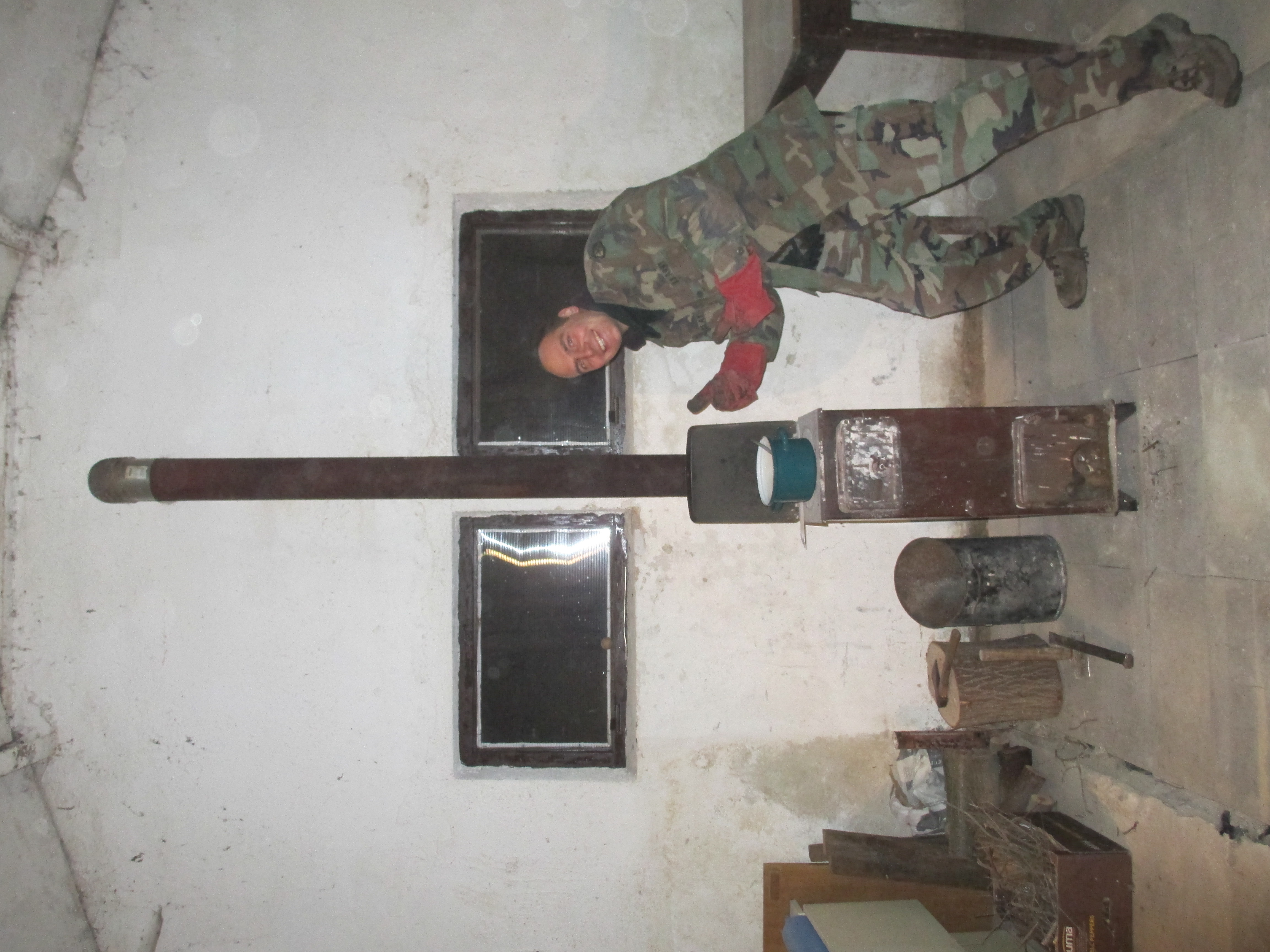 S Vendy jsme přijeli něco málo po 15h., chvilku pokecali s Uha 2324 a dali se do práce. Vyměřili jsme díru pro nový komín, probourali zeď a nainstalovali Petry včetně komínu na nové místo. Zkušební zatopení proběhlo na jedničku, konečně bude v místnosti trošku více tepla