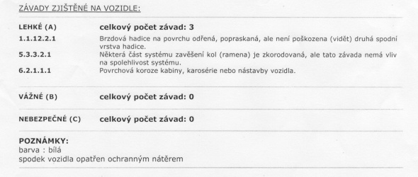 Dnes, na druhý pokus prošel emisemi. Následně na první pokus technickou, s jednou lehkou závadou "Netěsnost hydraulického zařízení"