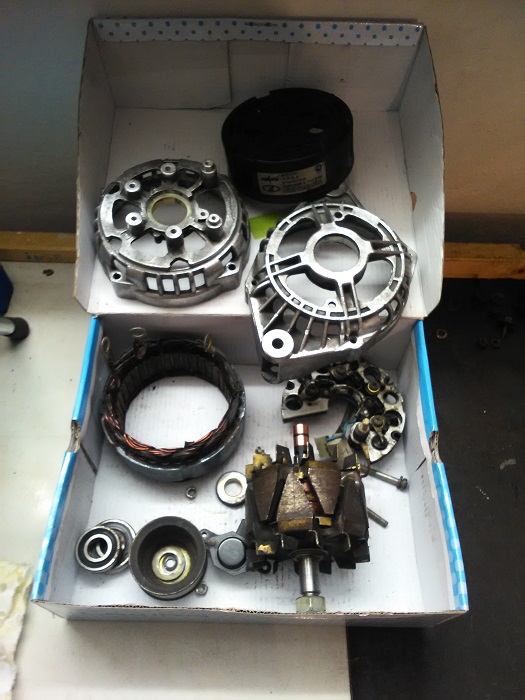 Tak jsem se pustil do GO alternátoru, vzal jsem to z gruntu. Samozdřejmě nová ložiska, nové komutátorové kroužky(protože po 200tis.km.byly již vydřené zejména ten blíž plast. krytu) a samozdřejmě výměna regulátoru s vyšším dobíjecím napětím