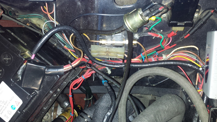 takze tu je cele elektricke zapojenie : cerveny plus , cierny minus od baterie , hnedy s bielym pasikom je otackomer (od komutatora siedmi pin ) oranzovy je plus od spinacky , sivy je snimanie rychlosti od snimaca na prevodovke .