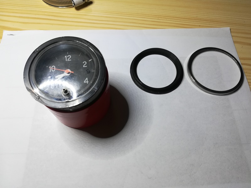 Dá se to v pohodě, horší je sundavat rámečky z malých budíků. Mimochodem ten chromový kroužek lze nasadit i na ty nové, takže to nevypadá zase tak divně. A jinak se původně jedná o výrobek firmy Veglia Borletti. Stejně jako všechny palubní přístroje.