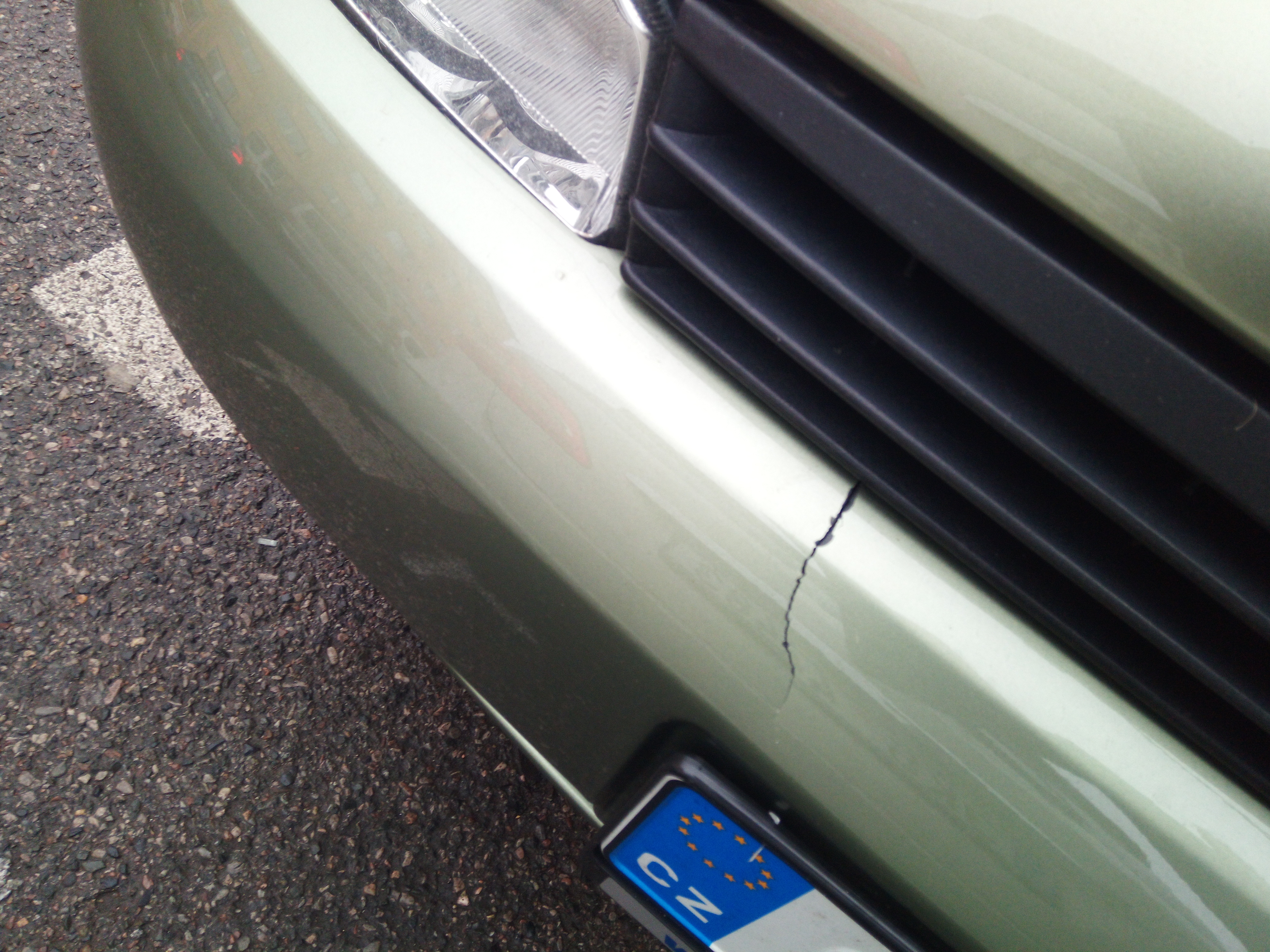 No a to nejhorší na konec, včera do mně couvla paní, vyrobila prasklinku, viz foto.