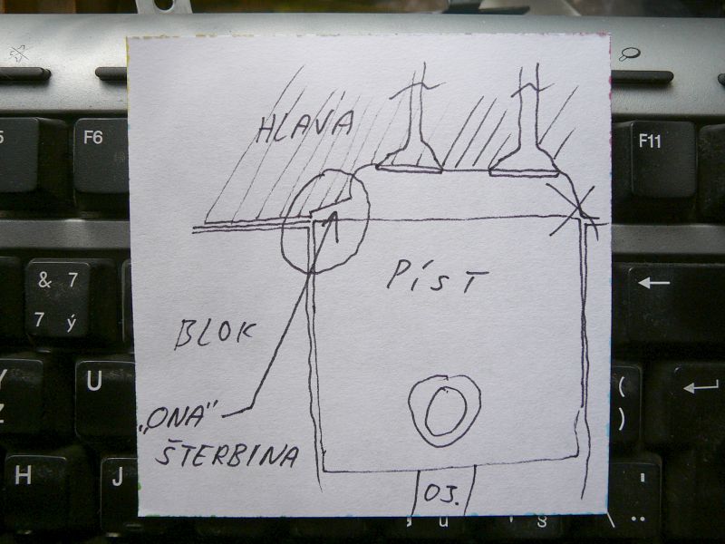 Nádhernej vše vysvětlující výkres, ale to, cos zakroužkoval, na hlavě mám i s milimetrovym schodem k rovině hlavy. A to, že mi lezl píst o 0,8mm z bloku na tomhle "svahu" nic nemění, takže se s tim nemusim crcat?