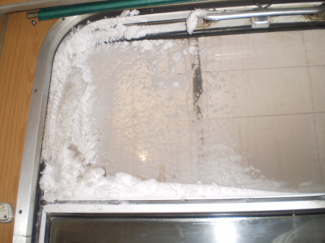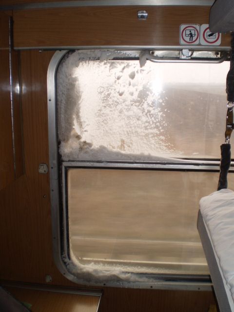 Cory, to na okně je nafoukaný sníh, nebo námraza? Ale jestli jsi byl v kupé sám, tak takovou námrazu bys za noc nenafuněl. :lol:
