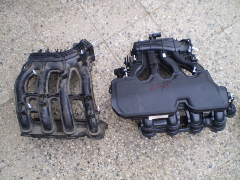 Tak som to hned využil a zamenil to moje dlho skladované sanie :mrgreen: Takze sacie potrubie z 21127 (106hp). Doteraz nechapem ako to mechanici vyberaju vonku. Sanie drzi na 5 sroboch (3 stifty a 2 sroby), k tomu zvrchu dva male stifty ako pomocné úchyty. Tych 5 srobov som odkrucal snad hodinu, pretoze nikam som kvoli klime nevedel nastrcit račňu. Chcel som dat dole altik, no spodny srob sa neda povolit kvoli kompresoru klimy. Kompresor sa neda dat dole, pretoze dalsi srob sa schovava pod altikom. Cely drziak, ktory to spolocne drzi nejde dole, lebo zvysne sroby su schovane kdesi dnu :mrgreen: Takze som len monterpakou naklonil altik a povolil vytuzeny srob (nechapem ako sa to robi v takej Kaline, ktora ma mensi motorovy priestor ako Priora a motor s prislusenstvom ten isty :D ) Vybrat uz odsrobovane sanie bol porod, musel som vybrat tie pozdlzne silentbloky a motor naklonit dozadu. Uz som sa "tesil" ako nasadim nove sanie a nebude sa mi dat ani nasrobovat matka na stift. No na pocudovanie sanie sadlo bez naklanania motora a to je o 8cm dlhsie! A pristup k stiftom zospodu tiez uplne luxusny. Len neviem ci nie je posunute viac dozadu a tym padom nevyberiem pelovy filter :mrgreen: Trosku som mal problem so vstrekovacou rampou, zavadzala membrana otvarania klapiek. No presunul som zvazok kabelaze popod sanie a potom sadlo, presne na chlp. Cely nateseny som to rychlo poskladal, uz stacilo len namontovat klapku a .... a priruba na klapku je ina :D Sice je tiez na 3 stifty, ale povodna ma roztec stiftov do "A" a ta nova rovnomerne do trojuholníka. No, klapku som dal na 2 stifty, kym nevyrobim prirubu :mrgreen: A este nemam kam zapojit odvetravanie nadrze, resp. vyvod z aktivneho uhlia. Ale to je detail.