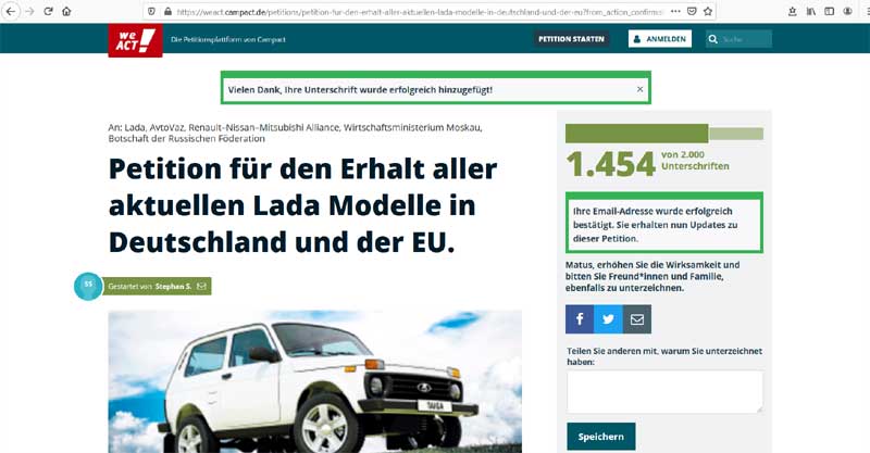 Chlapi prosím vás, čo ste ešte nepodpísali tú petíciu proti ukončeniu predaja aut Lada, tak ju prosím podpíšte.