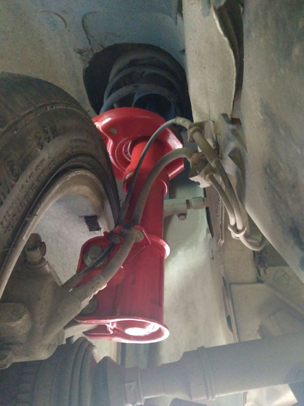 Skuste spravit maly test. Nastartujte motor, poproste niekoho, aby vam tocil volantom zo strany na stranu a strcte prst medzi blatnik a kapotu v mieste tlmica. Hned pocitite tu "tuhost" :mrgreen: