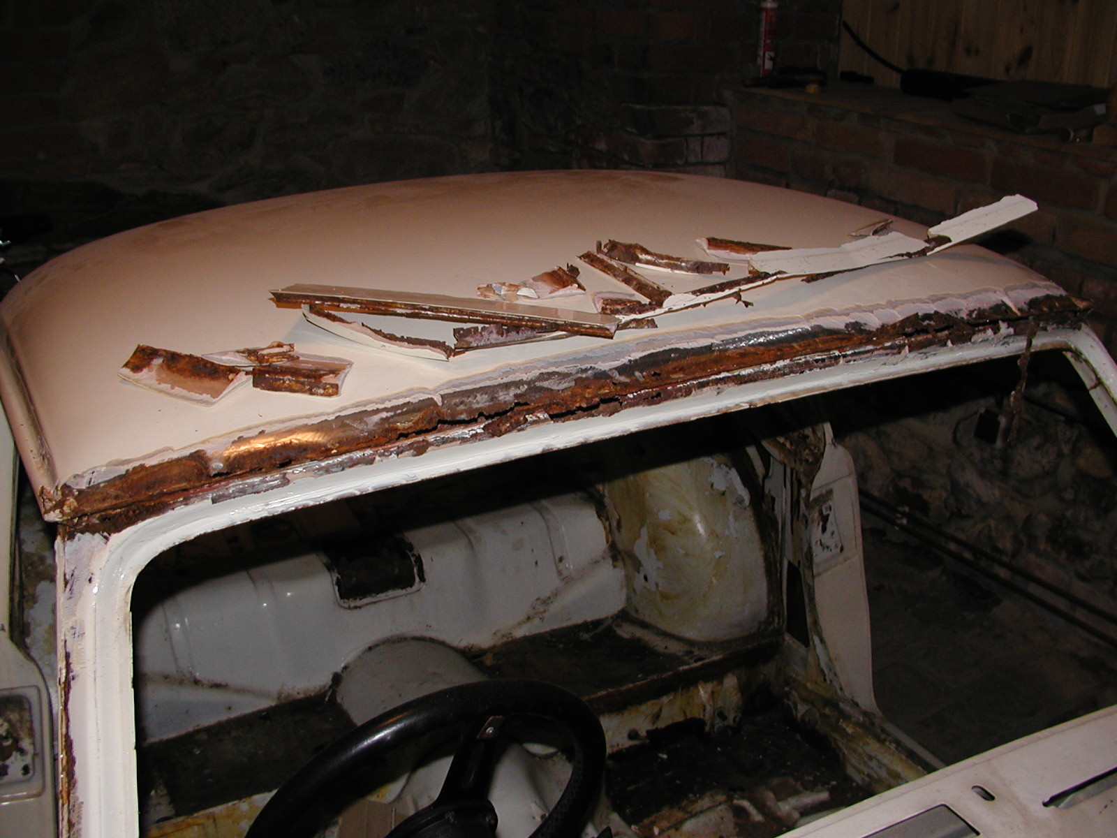 Pravda, když jsem viděl tu odstrojenou karoserii před lety naživo a u toho předního okna jsem viděl ty dírky ...bylo to uplně jako kus nábytku kompletně prolezlej červotočem. Nebo by se taky dalo říct, že někdo si vyhrál s tenoučkým vrtákem a "nasázel" to tam po 3 mm od sebe.