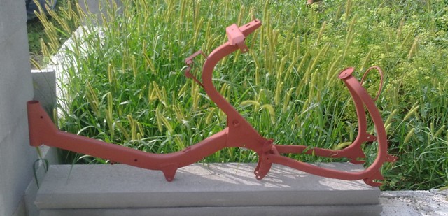 Každopádně jsem teď vyčistil svíci a luxusně vypulíroval kontakty, nastavil okometricky mezeru 0.4 +0.2 a pěkně chytá a vrčí, na stojanu tak nějak akceleruje, žádné oblaka dýmu, krásně drží volnoběh, paráda. Řadičku mám svařenou, pant pod sedačkou taky. Ještě dát hadičku, nasadit nádrž, zadeklovat a ... a hurá na brzdy a správné uložení bowdenů a dalších 10 drobnůstek.