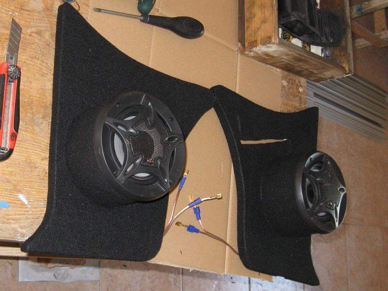 Konečně jsem po letech dodělal celej interiér do černý barvy a nechtěl jsem už znova dávat repráky do dveří a řezat tapecírunky, tak jsem na ně udělal takovýhle domečky.
