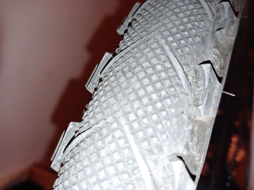 Starý pláště jsem sundal o něco dříve než ty a řekl bych, že tak 10% těch bočních patek bylo z části utržených.