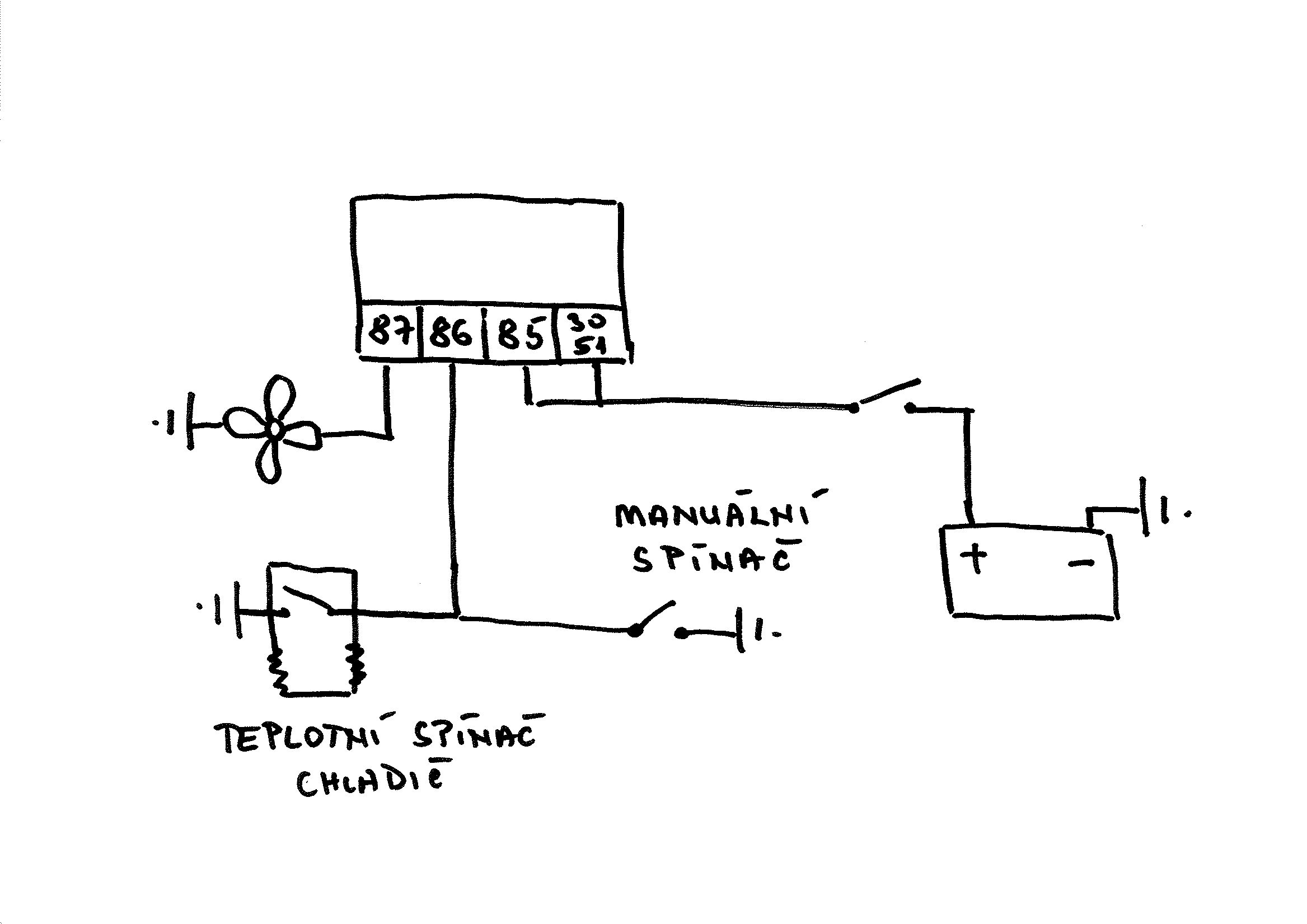 Od poistkovky ani nic netreba brat, pretoze rele ventilatora je ovladane minusom. Takze len priviest kostru cez vypinac k relatku (mal by to byt cierny kablik s cervenym puzkom, ak si spravne pamatam)