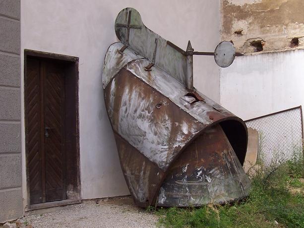 Tak, a teď další otázka. Ovšem trochu odlišná. Já nevim, co to je a právě chci, aby jste mi to objasnili. Stálo to před budovou bejvalýho mlýna v Jindřichově Hradci, uvnitř toho je taková konstrukce, podle který to vypadalo, že to v originále bylo orientovaný stejně, jako to teď stojí a horní díl bejval asi otočnej. Tak ví někdo, o co by se mohlo jednat??