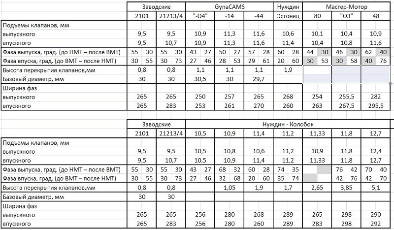 Nechcem aby sa to bralo ako rypanie, ale uvadzal si, ze vacka 2101 ma casovanie 232/232, ale podla tejto tabulky a podla dalsej, ktoru som nasiel na ruských strankach, ma 265/265 :P