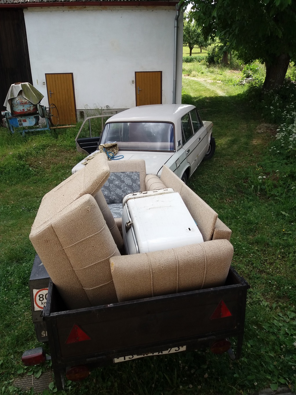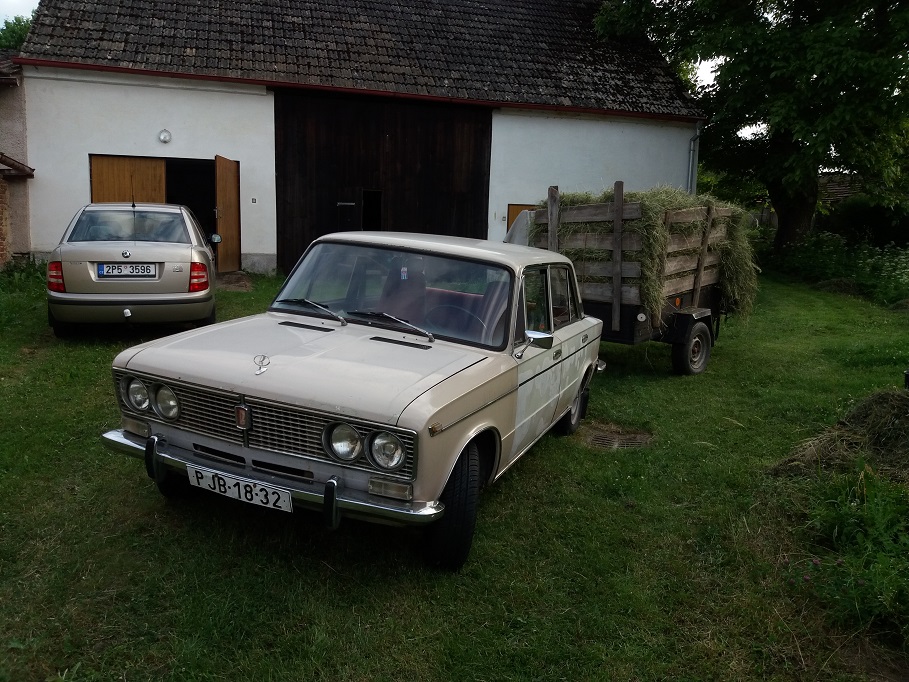 No a samozřejmě auto musí bejt k něčemu, pouhý stání v garáži mu způsobuje lítost a žal. Takže se teď Ladná zapojila do svážení sena, aby králící měli co papat a následně já jsem měl co papat