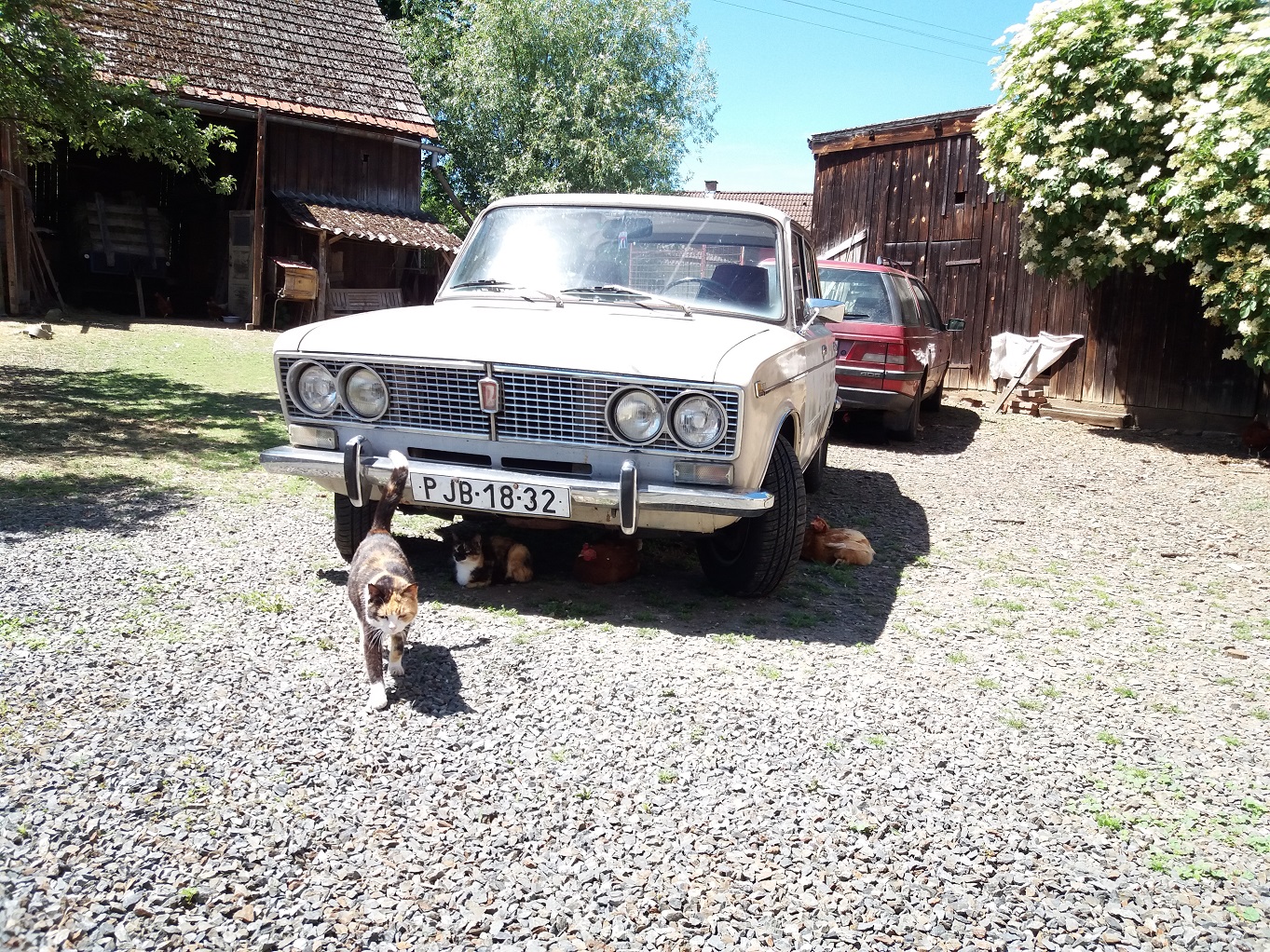 Жигули ВАЗ 2103 1.5/55,4 kW белый (сделано в 1974 г.) оу йеах гуд джоб ёлки-палки t.č. odstraněny dva metráky pavučin, vrčí a jezdí kolem bloku