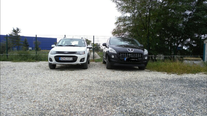 .Kalina Cross a Peugeot 3008.Človek by povedal keď to stretne na ceste,že je to väčšie auto...na prvý pohľad je to mohutnejšie,ale fotky ukazujú,že to nie je ani nejak dlhšie ani vyššie a to nehovorím o výške podvozku.Ak by to nebolo na 16" diskoch a vyšších pneumatikách...