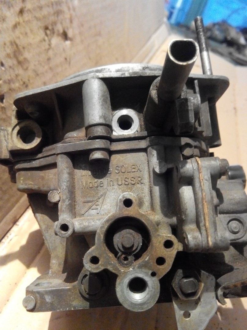 Na fotce níže je stejný karburátor jako máš ty, ale s demontovaným elektroventilem, je také bez víčka, pouze má na kanálech osazené zaslepovací zátky .