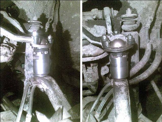 Konus na horní čep v těhlici se projede aby z něj byla pouze rovná díra (asi by se nemuselo ale bude možno použít širší šroub). Okolí díry (dosedací plocha těhlice a nástavce ) se zarovná do rovna a nástavec se přichytí šroubem o vysoké pevnosti.
