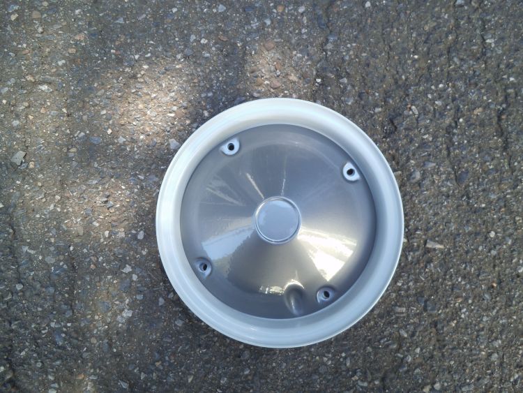 Jak jsem slíbil v jiném topicu - dávám fotky nastříkaných disků a poklic. Disky jsou v bílé spíše velmi světlounké šedé, poklice jsou v tmavě šedé s leskem.