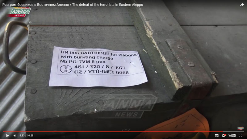 České, slovenské ale aj poľské zbrane sa v posledných dňoch našli v Sýrii /Aleppo v rukách ustupujúcich isisákov, buď sú z ešte starých vyrabovaných skladov alebo dodávky veselo prúdia z eu cez tretie krajiny.. akosi Brusel a EU nefunguje, toľko kšeftov, Eu je eldorádo priekupníkov so zbraňami.