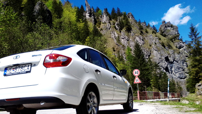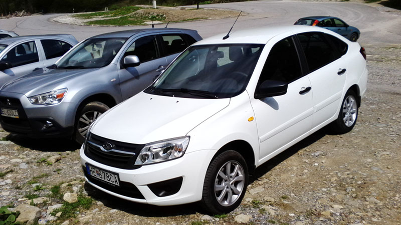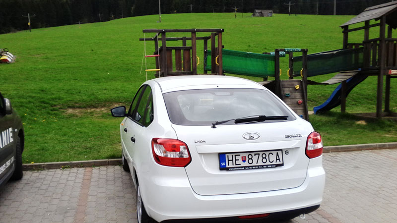 Aj keď je nájazd kilometrov ešte nepatrný niečo už môžem o vozidle Lada Granta napísať. Zmiešaná cesta po okreskách, dialniciach, ale aj cestičkách medzi dedinkami v Terchovej a jej okolí potvrdila, že motor v Lade Grante je veľmi živý a pružný, páči sa mu naozaj vyššie spektrum otáčok nad 2500 pri ktorých je aj spotreba skutočne nižšia a po priemere veľmi dobrá, kopčeky, klesania s túpania, tiahlejšie zákruty jej nerobili žiadne problémy. Vysoké sedisko vo vozidle dáva dobrý celkový prehľad, čo sa pred vozidlom a okolo neho deje, zadné sklo síce nie je veľké, ale tento nedostatok mierne zmenšujú veľké zrkadlá po oboch stranách. Bál som sa plávania vozidla na cestách, ale vozidlo celkovo veľmi dobre držalo stopu, asi aj vďaka pneumatikám Pirelli, pri silnejšom nárazovom vetre, ale občas zatlačilo auto na dilanici do strany asi aj vďaka zvýšenému podvozku a zadku, čo je vhodnejšie do terénu nie je až tak vhodné na dialnicu a opačne. Celkovo by sa to dalo poriešiť zmenou pružín a tak dať viac vozidlo do horizontálnej roviny, stratí sa tak mierne plusový rozhľad o situácii okolo vozidla a jeho svetlejšia výška. Vozidlo nastupuje do zákrut vcelku ochotne a spoľahlivo, motor svižne drží krok a otáčky, ktoré ale u mňa ešte neprekročili 4000, držím to v priemere 3600- 3800 ale aj tak vidieť že hmotnosť auta dáva dostatočné zrýchlenie pri obiehaní a motor ťahá aj vo vyššom prevode. Pri týchto rýchlostiach ale badateľne narastá hluk a odpor vzduchu ktorý je už nad 130km/h výraznejší a na tom by trebalo ešte zapracovať, doplnením tesnení a poriešením inej antény a tvaru plastu zrkadiel. Nemal som ale žiadny problém rýchlo prekročiť 160km/h. Ak sa ešte vrátim k výkonu jediné malé negatívum som videl pri zapnutej klimatizácii, ktorá citeľne uberala výkon dialničného tempa a pri obiehaní som ju občas aj vypol, tá ale chladí veľmi rýchlo, taktiež kúrenie je v zimných mesiacoch vo vozidle takmer okamžité a veľmi dobré. Výška podvozku mi pár krát pomohla s parkovaním na miestach, kam sa konkurencia ani neodváži, obrubník a menšie kamene pri uváženom pomalom vychádzaní jej nerobia problém, taktiež neoškriete predok nárazíka. Granta sa smelo môže vyrovnať vo výške a svetlosti podvozku, mestským malým značkám SUV a podobným verziám - viď. foto s Mitsubishi. Motorový priestor nebol po výlete skoro vôbec špinavý v daždivom počasí sa to dá poriešiť tesnením kapoty. Náplň do ostrekovačou by mohla byť o trošku vačšia, ale pri štandardnej jazde postačuje. Citlivejším môže vadiť silný zvuk signalizácie smeroviek vo vozidle. Využil som aj silnejší klaksón proti zaspatým šoférom na cestách a križovatkách. Celkové pohodlie vo vozdile bolo pri dlhšom cestovaní dobré, mierne mi vadil kratší sedák sedadla, možno ale niekto pri výške 186cm sedí viac vzpriamene, sedadlo je ale celkovo pevné, nekrúti sa a nevŕzga. Pri verzii ICE sa nedá výškovo nastaviť. Odkladací priestor a celkovo kabína je poriešena jednoducho, ergonomicky až sparťansky, ale neurazí. Ovládacie prvky sú na svojich miestach a ladenie s ovládaním rádia dobré. Ručná brzda je aj pri polohe spustenia mierne hore a pripomína tvarovo ešte brzdu z Favorita z 90tych rokov. Menší nedostatok možem vytknúť sťahovaniu okna na spolujazdcových dverách, kedy sa nechtiac po uložení ruky na výplň dverí samočinne spustí a okno ide dole so spolujazdcovou otázkou prečo mu dávam dole okno