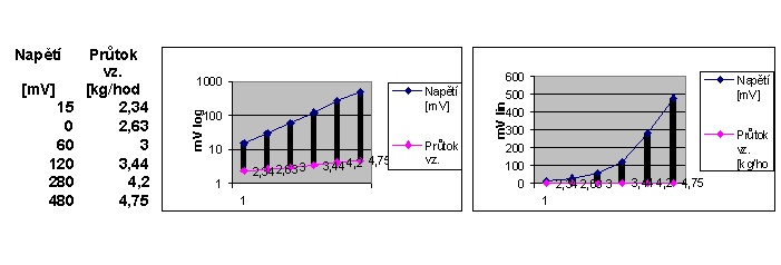 Citlivost VV se mění od 30 mV /kg/hod na začátku charakteristiky do 300 mV /kg/hod na konci.