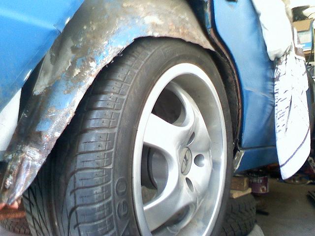 Maysner, dalo by se říct že zadní lemy jsou částečně upravené.. hlavně podběh je o dost vyklepanej aby do něj vlezlo kolo.. lem je na to pak navařenej, ale není o moc víc ven.. hlavně je na něm zaklepaná hrana... je to OK.. taky mám nastavitelnou tu dlouho zadní tyč a nápravu si vycentruju.. ale.. ještě to bude chtít asi krapet polechtat kladívkem, protože ještě cele auto musí jit niž... buď kamoš snad pujčí vytahovačku, tak to trochu přejedu a nebo to poklepu tam kde to bude zle... a to bude nejspíš v místě (jak to vysvětlit... jak máš na zadním blatníku takovej ten vodorovnej prolis, tak tam... )... :)