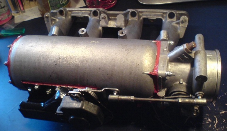 ovladani a snimani polohy na opacnou stranu, aby smerovala dopredu kde bude plnena pres chladic vzduchem stlacenym radialnim turbinou T4. Bez svarecky na hlinik orisek celkem, pridam pozdeji i slozeny komplet.