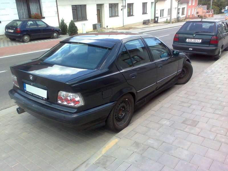 Dej tam liťáky, střikni to do calipsoredmetalic, a sundej ty zadní světla. Pak to možná bude auto:-D....nee dělám si srandu e36 v sedanu se mi vždicky líbili i to bratrovo cupe není špatný, hlavně že to není compact:-D.